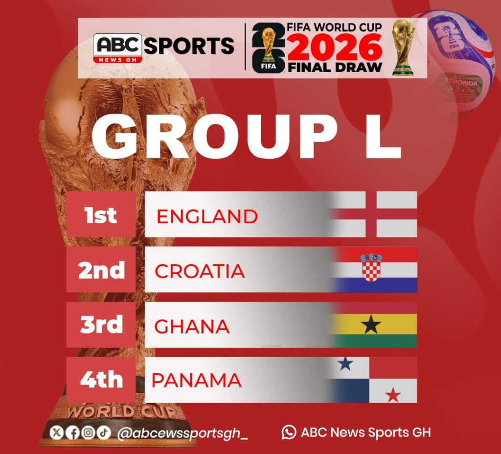 The Black Stars of Ghana have been drawn in Group L in the 2026 World Cup to face England, Croatia and Panama following Friday’s final draw held on December 5, 2025.