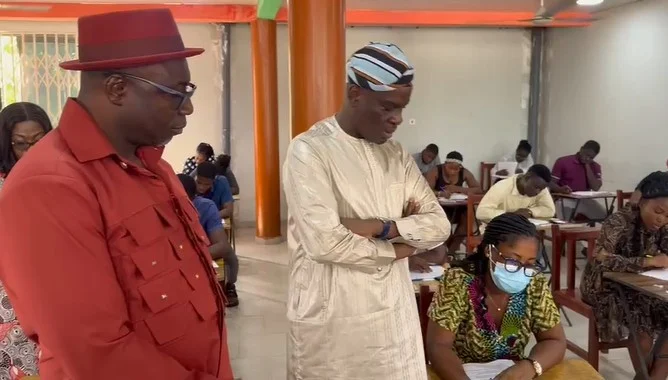The examination, which is scheduled to last two hours, is being conducted in various centres including the Accra High School, where 600 candidates—both freshers and re-sitters—are participating.