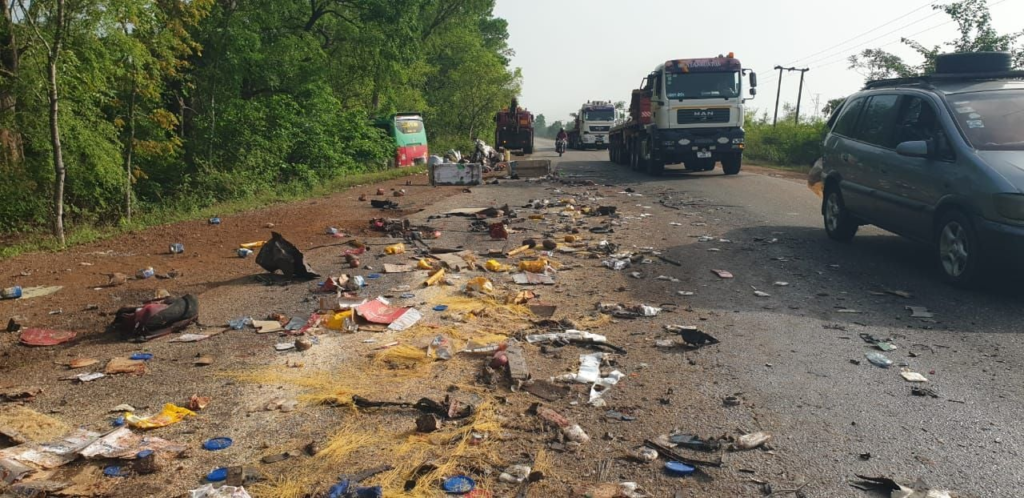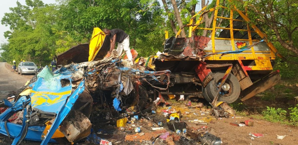 According to reports, the collision happened near Suronuase, a community within the Kintampo North Municipality, when the bus attempted to overtake two vehicles. In the process, it veered into the opposite lane and collided head-on with the oncoming truck.