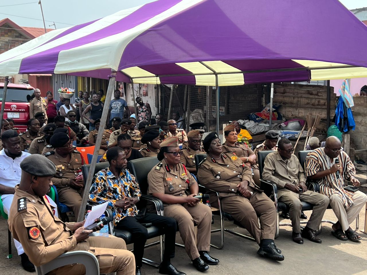 Speaking at the launch, Dr. Gideon Asamoah Tetteh, representing the Honourable Minister for the Interior, commended the GNFS for the initiative and urged market leaders and traders to embrace the programme wholeheartedly. He emphasized that collective commitment is crucial in eliminating market fires.