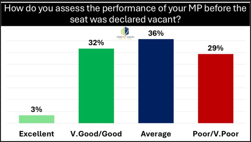 On performance, voters offered mixed assessments of Nyindam’s brief tenure in Parliament before the seat was declared vacant. While 32 percent rated his performance as good or very good, 36 percent described it as average, and 29 percent rated it poor or very poor.