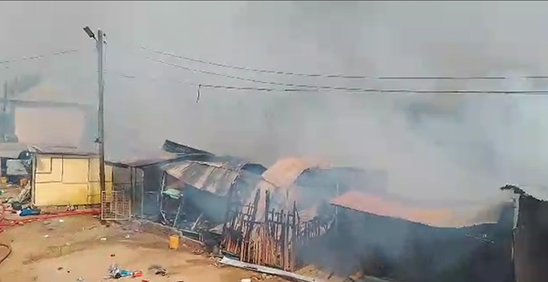 The Ghana Fire Service has been spotted at the scene, actively battling the blaze.