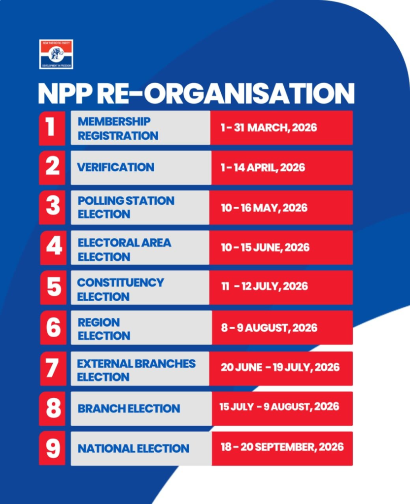 The New Patriotic Party (NPP) has unveiled a comprehensive timeline to guide its upcoming internal elections, setting in motion a series of activities from grassroots structures to the constituency level.
