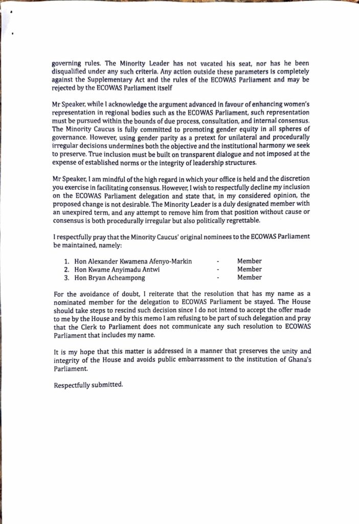 Appiah-Agyei strongly opposed the removal of Minority Leader Alexander Afenyo-Markin from the ECOWAS Parliament, noting that he still has an unexpired mandate and was not consulted before the reshuffle.