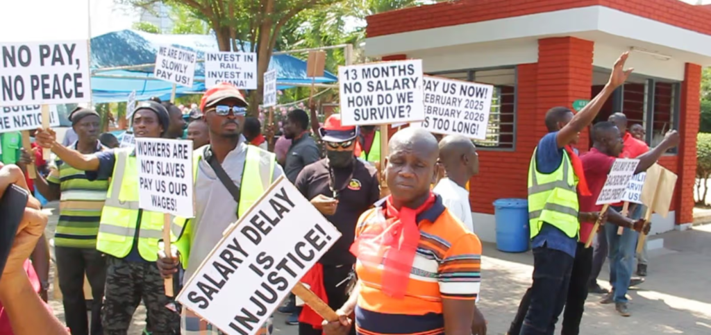 Some workers of the Ghana Railway Company Limited have staged a protest at the Ministry of Transport, demanding the immediate payment of outstanding salary arrears.