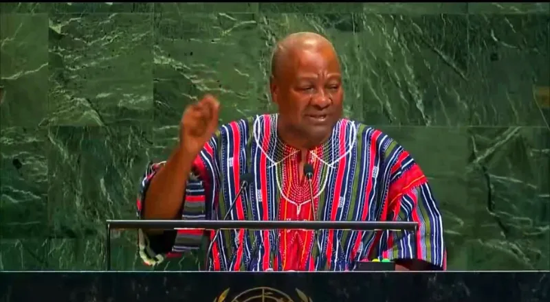 President John Dramani Mahama has delivered a forceful address at the 80th United Nations General Assembly in New York, calling for an immediate end to what he described as crimes against Palestinians in Gaza.