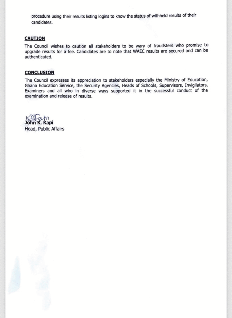 The release marks a significant milestone for thousands of Junior High School graduates across the country who sat for the examinations earlier this year.